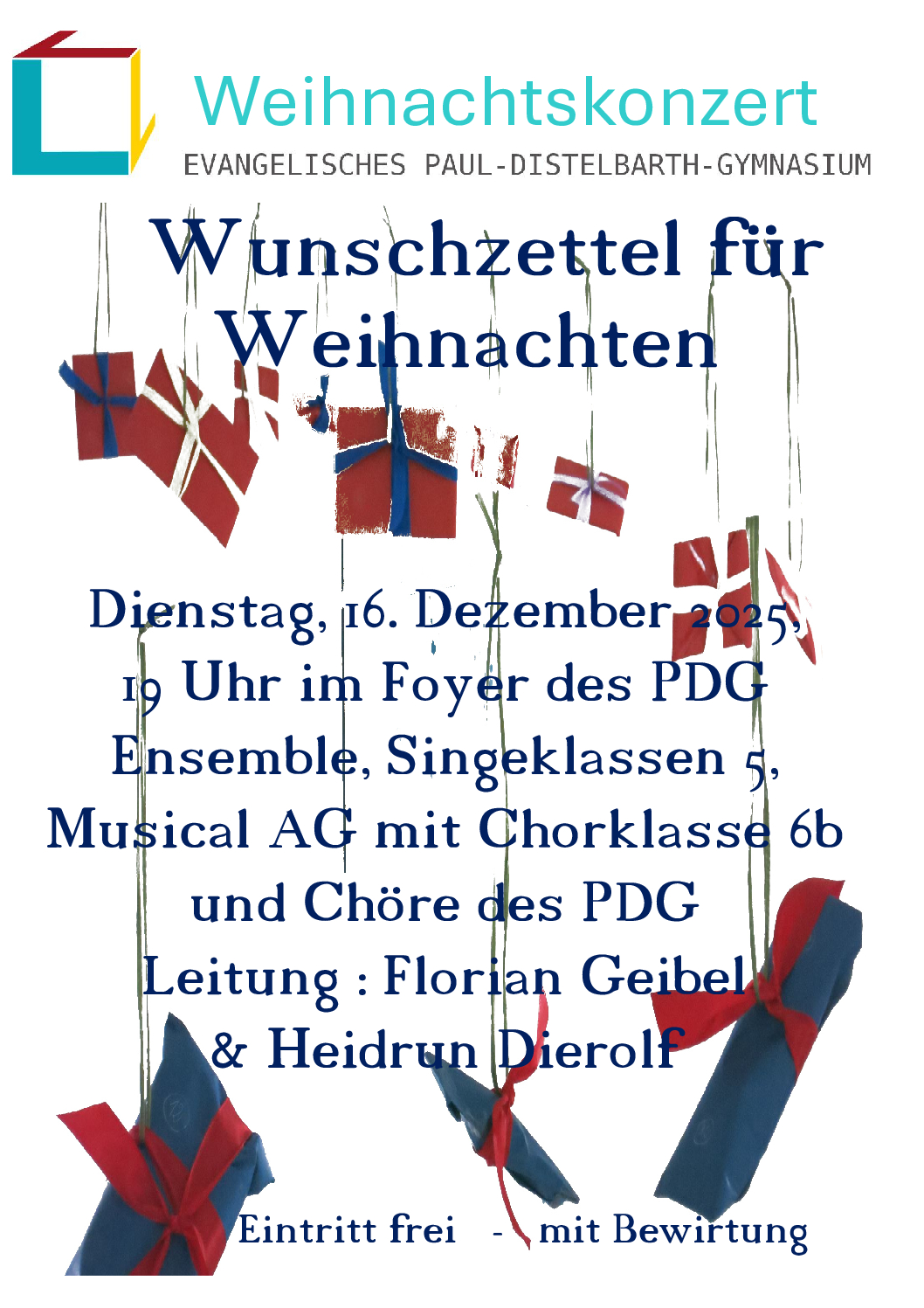 „Wunschzettel für Weihnachten“ – Festliches Weihnachtskonzert am Evangelischen Paul-Distelbarth-Gymnasium