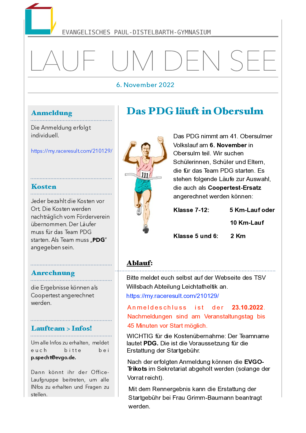 „Das PDG-Laufteam sucht Schüler, Eltern und Lehrer, die das